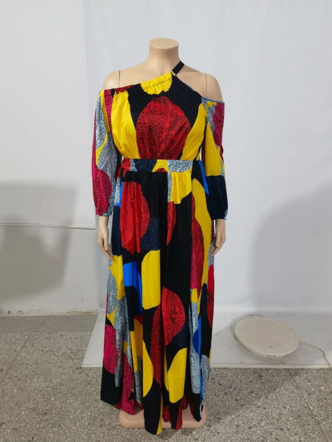 Style: CasualPattern: PrintingMaterial: 95%Polyester+5%SpandexSeason: Spring SummerFit Type: Regular FitElasticity: None ElasticitySpot/color block patchwork print, chic and novelSloping shoulders, off the shoulders, swing designLong dress for all occasionsWholesale plus size dresses, various fashion styles to choose from Size Chart ...